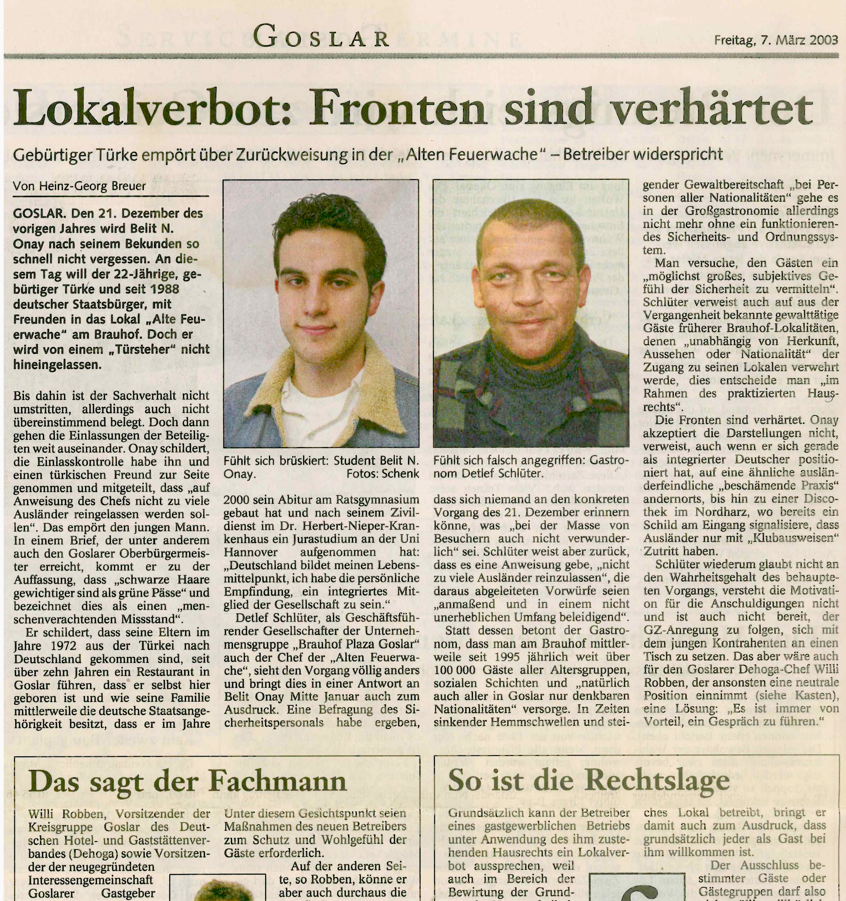 weder war das Problem in den Jahren 2002/2003 neu, noch hat sich bis heute daran leider irgendetwas geändert. Es handelt sich hier um ein Problem, das nicht nur in Goslar anzutreffen war und ist, sondern überall in der Republik: Hamburg, Frankfurt, Berlin – aber eben auch in Hannover, Göttingen, Braunschweig und anderen Ecken Niedersachsens.